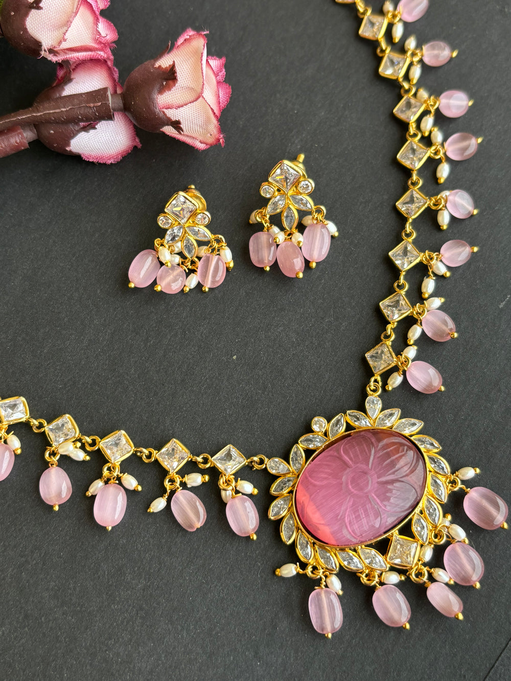 Dimensions: Length of necklace one side- 30cms appx Length of earrings- 8cms appx